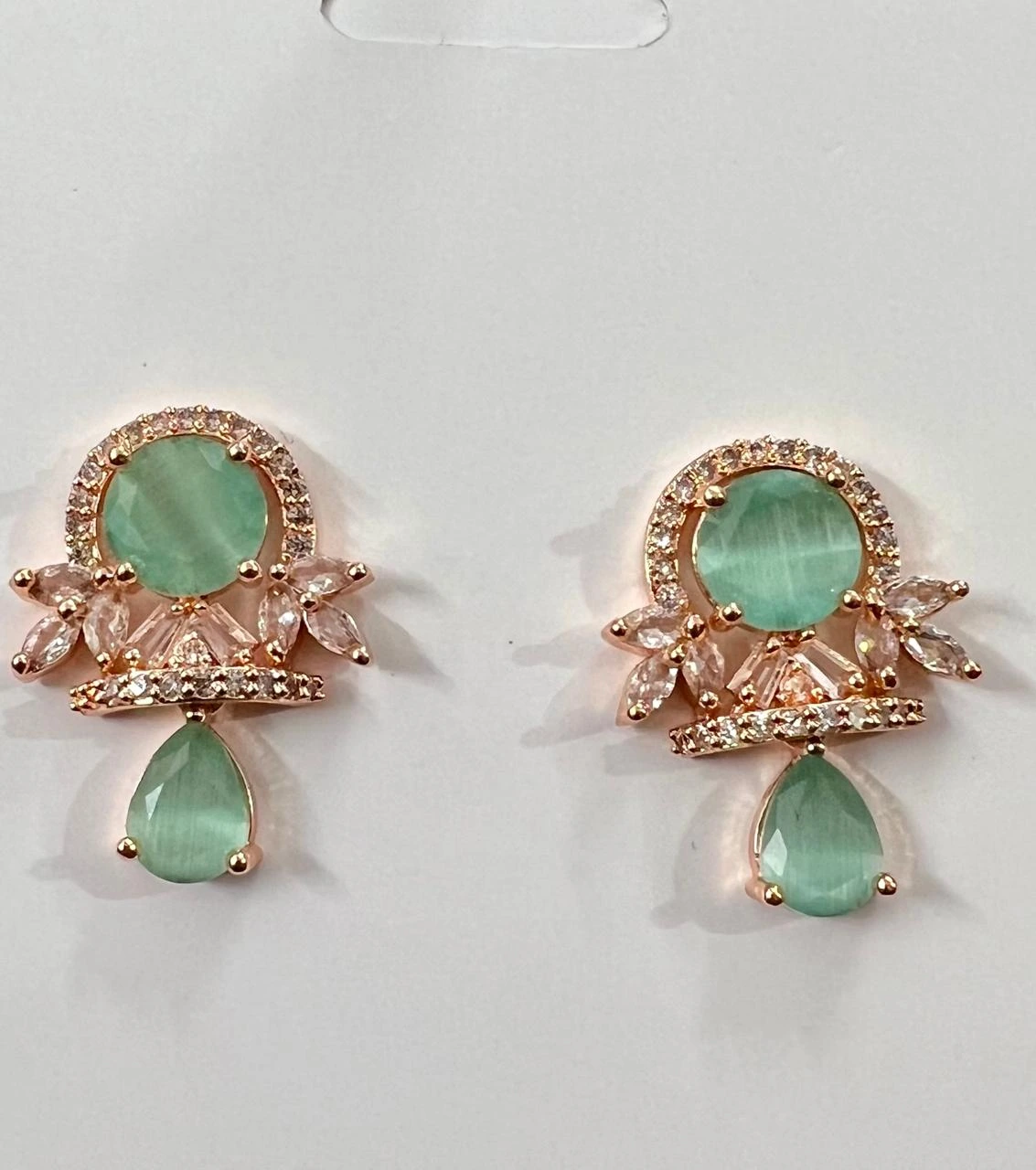 Graceful contemporary earring in Crystal clear, Emerald green, Yellow, Sea Green, Ruby Red and Rose pink stones. Perfect for daily wear and small occasions.