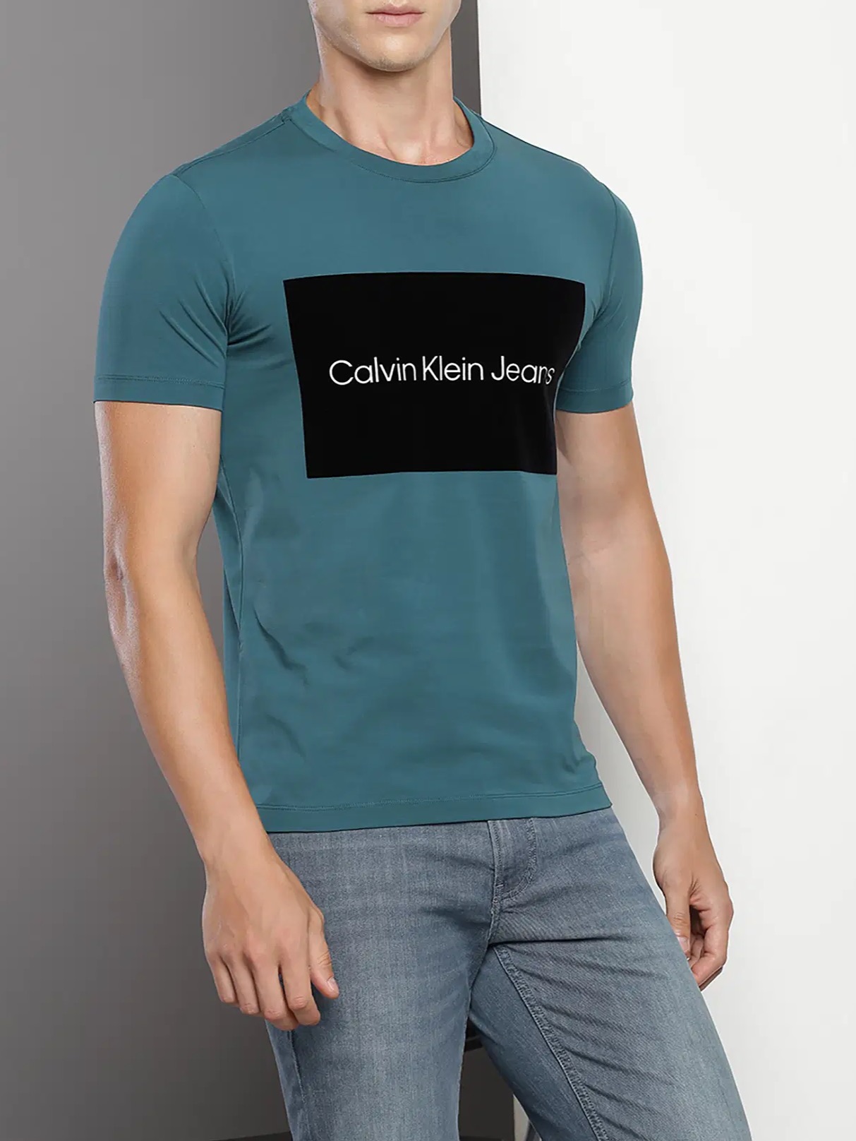 CALVIN KLEIN Olive Green Cotton Mix Media T-Shirt