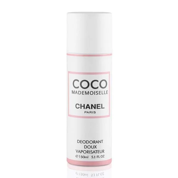 Chanel Paris Coco Mademoiselle Deodorant Body Spray. A sensation of instant freshness and wellbeing. The very gentle formula contains a delicate fragrance, and antibacterial and deodorising agents that give lasting protection. Iridescent white, banded in gold, the deodorant is a natural spray for safety in use.