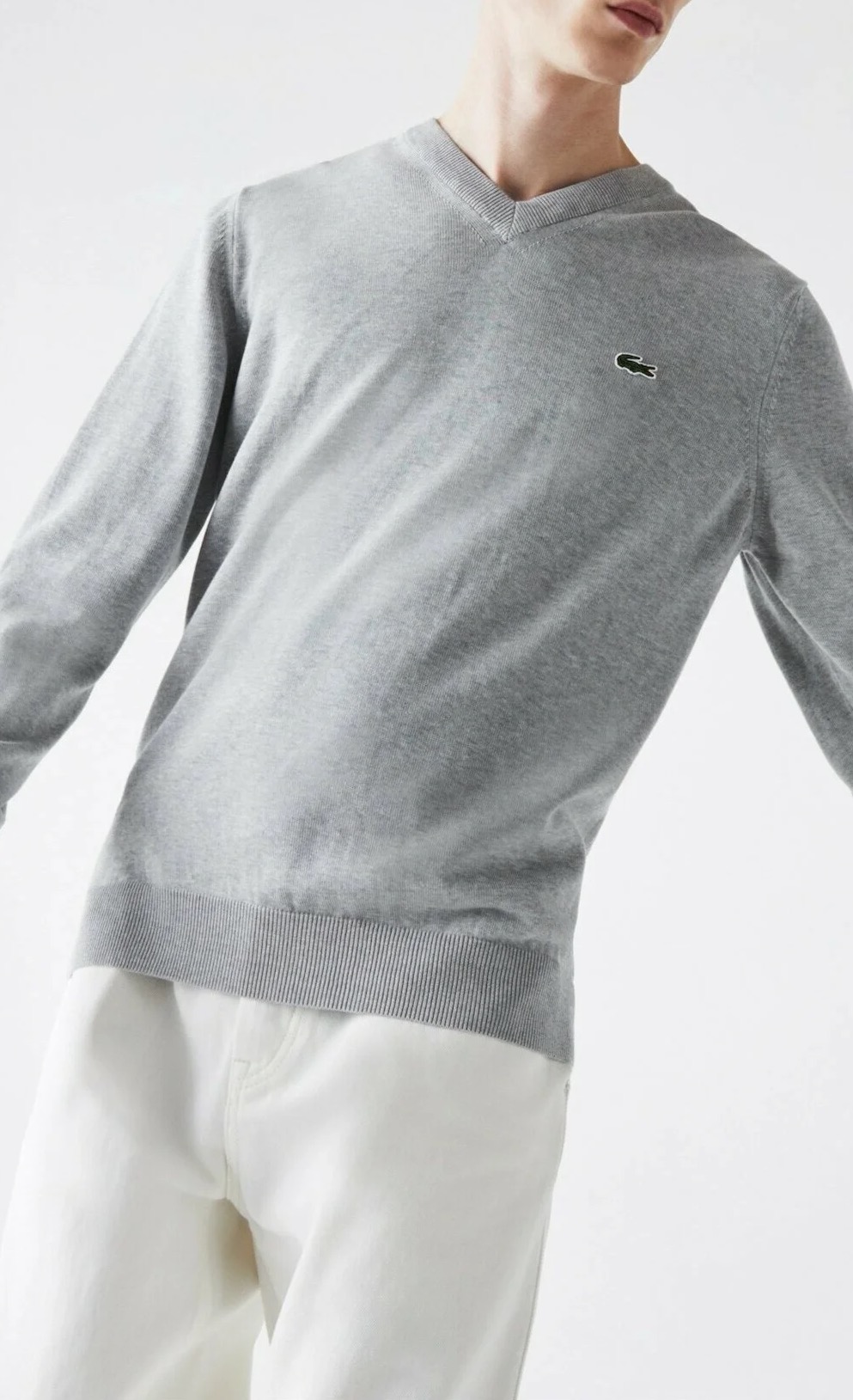 Lacoste – Monochrome Cotton V-neck Sweater (Grey)