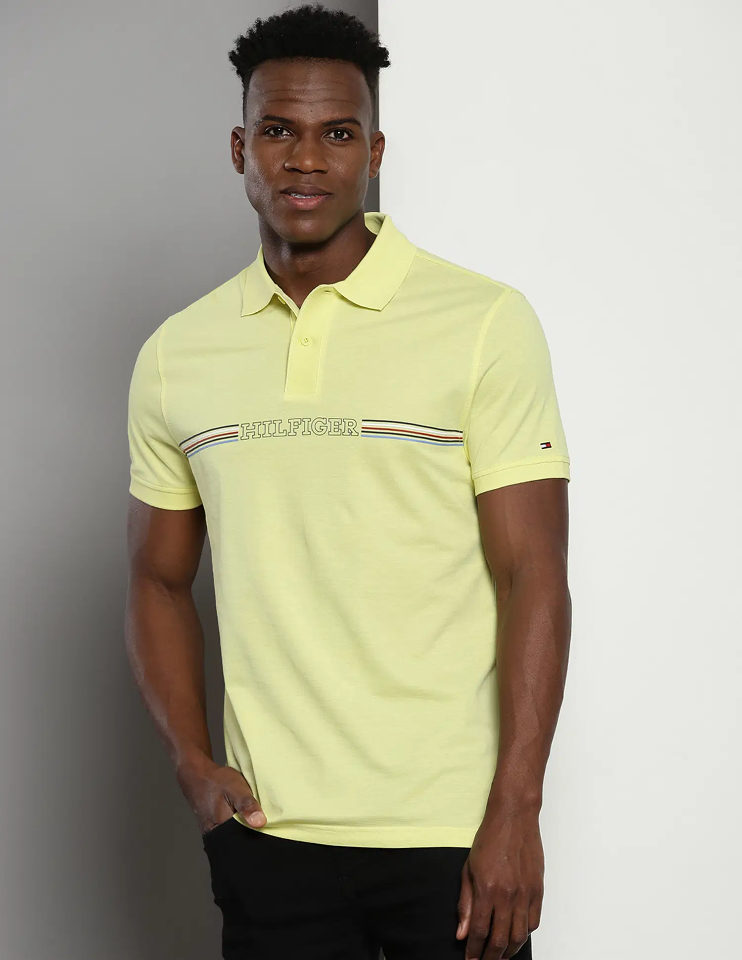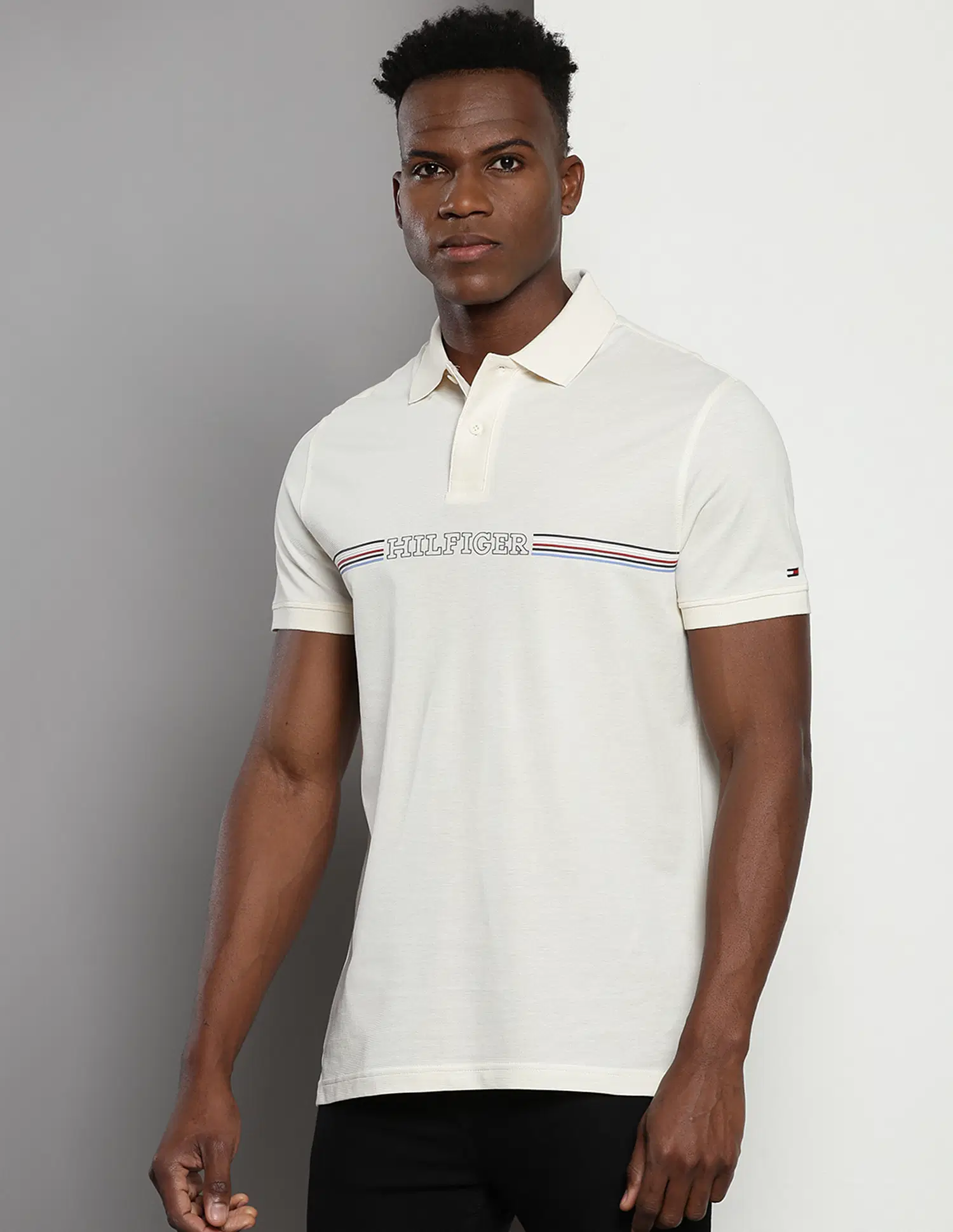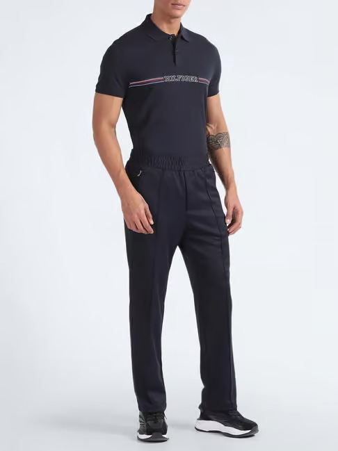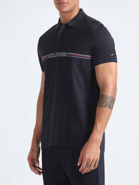 Fashion a delightful look after wearing this polo t-shirt from Tommy Hilfiger. The regular fit offers a balanced aesthetic appeal. It provides a clean and well-proportioned look without appearing too baggy or snug.