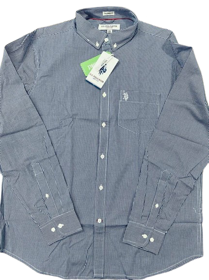 U.S. Polo Assn. Men Blue & White Tailored Fit Checked Casual Shirt
